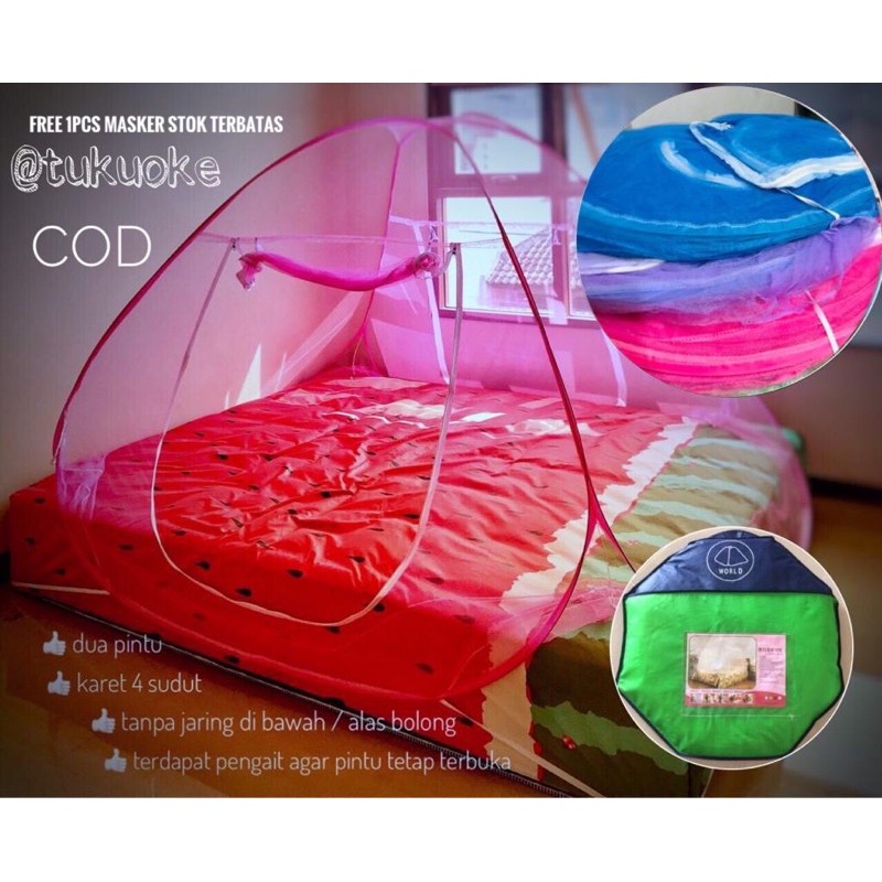 Kami yakni distributor yang menawarkan berbagai ragam kelambu lipat, kelambu kemah, kelambu gantung. Kelambu praktis dapat dilipat, dibawa & dipasang dimana saja dalam atau diluar rumah tanpa membutuhkan tali. Sebagian besar orang yang hidup di daerah kelambu lipat dipasang di sekeliling tempat tidur dan memiliki rangka kawat elastis. Jual kelambu lipat modern ukuran king single size hub bunda nadia sms/wa 0857.7373.4200 kelambu modern, kelambu lipat murah modern jakarta, harga murah, menerima grosir dan reseller,dapatkan diskon menarik. Kelambu nyamuk lipat modern model tenda brand: