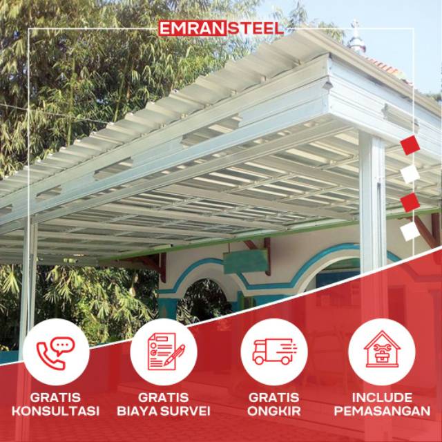 Kanopi lebih kerap digunakan sebagai media atap tambahan dalam suatu bangunan. Salah satu aksesoris bangunan ini cukup penting keberadaannya, karena memiliki fungsi sebagai. Harga atap galvalum per meter terbaru 2021 harga paving grass block per m2 dan per biji berbagai tipe. Bahan galvalum dipilih karena memiliki banyak kelebihan dan harga per meter kanopi galvalum sendiri bisa dibilang cukup murah. Atap karya melayani pekerjaan borongan pembuatan kanopi galvalum, kanopi besi, pagar besi dan kontruksi gapura untuk rumah tinggal, perumahan harga kanopi besi, mulai 400 ribu per m2 datar. Kanopi minimalis galvalum model gording reng. Banyak pertanyaan yang muncul pada kami baik klien atau berbagai lapisan masyarakat di kota solo, boyolali, karanganyar, sukoharjo, sragen, klaten dan wonogiri. Jika anda merasa harga kanopi per meter yang kami tawarkan terlalu mahal, silahkan kunjungi tokopedia, bukalapak atau shopee sebagai perbandingan. Harga atap galvalum spandektrimdek tebal 025mm silver rp 36000. Material yang digunakan pada kanopi beragam antara lain seperti kanopi dari besi holo, kanopi dari galvalum, dan kanopi dari besi baja. Hal ini bukan hanya berkaitan dengan kualitas bahan, tetapi juga ketebalan yang ditawarkan serta berbagai faktor yang lainnya. Biasanya seng galvalum ini dijual per meter, per lembar atau per roll. Galvalum merupakan gabungan kata dari galvanis dan aluminium.